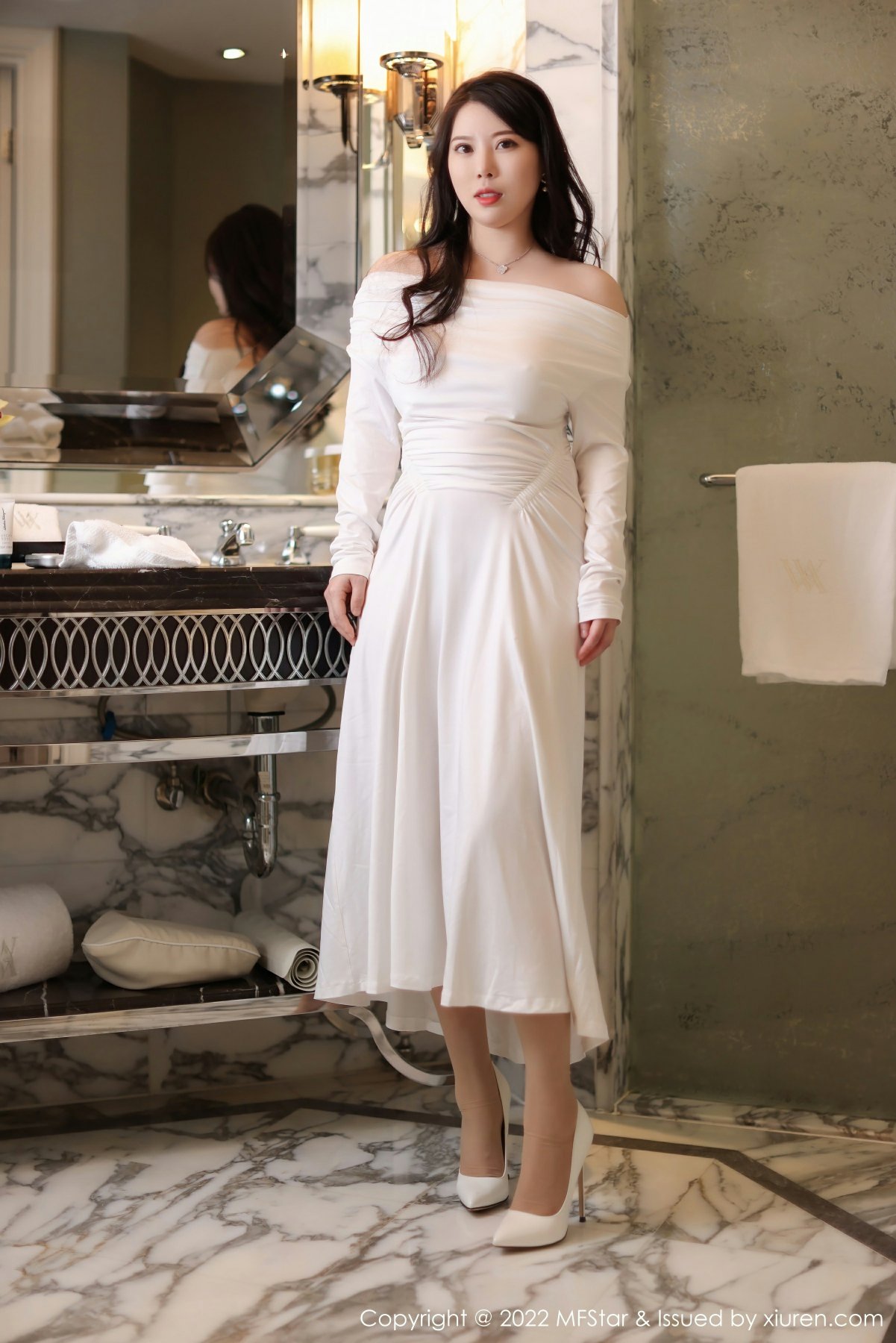 模特@白茹雪 阳朔旅拍写真发布,性感白色露肩连衣长裙搭配性感诱人原色丝袜,浴室场景拍摄,雪白肌肤丰满有致娇躯婀娜动人,全套写真共51P,希望大家喜欢和多多支持。