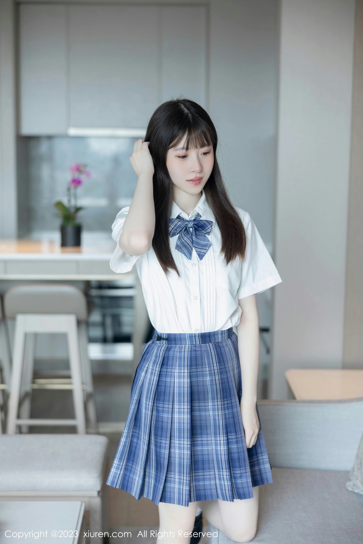 新人@林悠悠 首套写真发布,性感白色上衣搭配蓝色格子裙,性感浅色内衣,娇美姿态妩媚欲滴,样貌清纯甜美,曼妙身姿娇媚动人,全套写真共计103P足量放送,希望大家喜欢和多多支持新人。