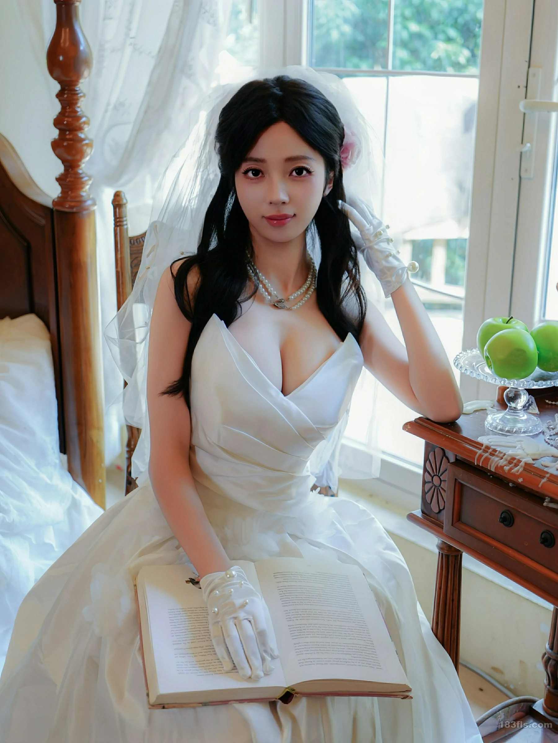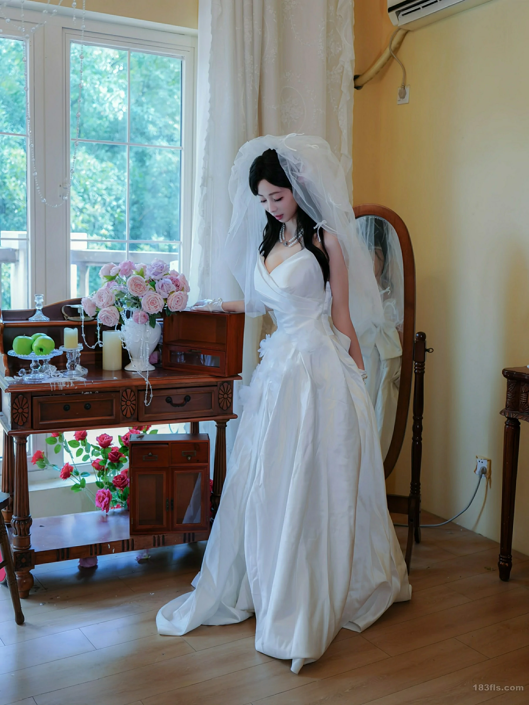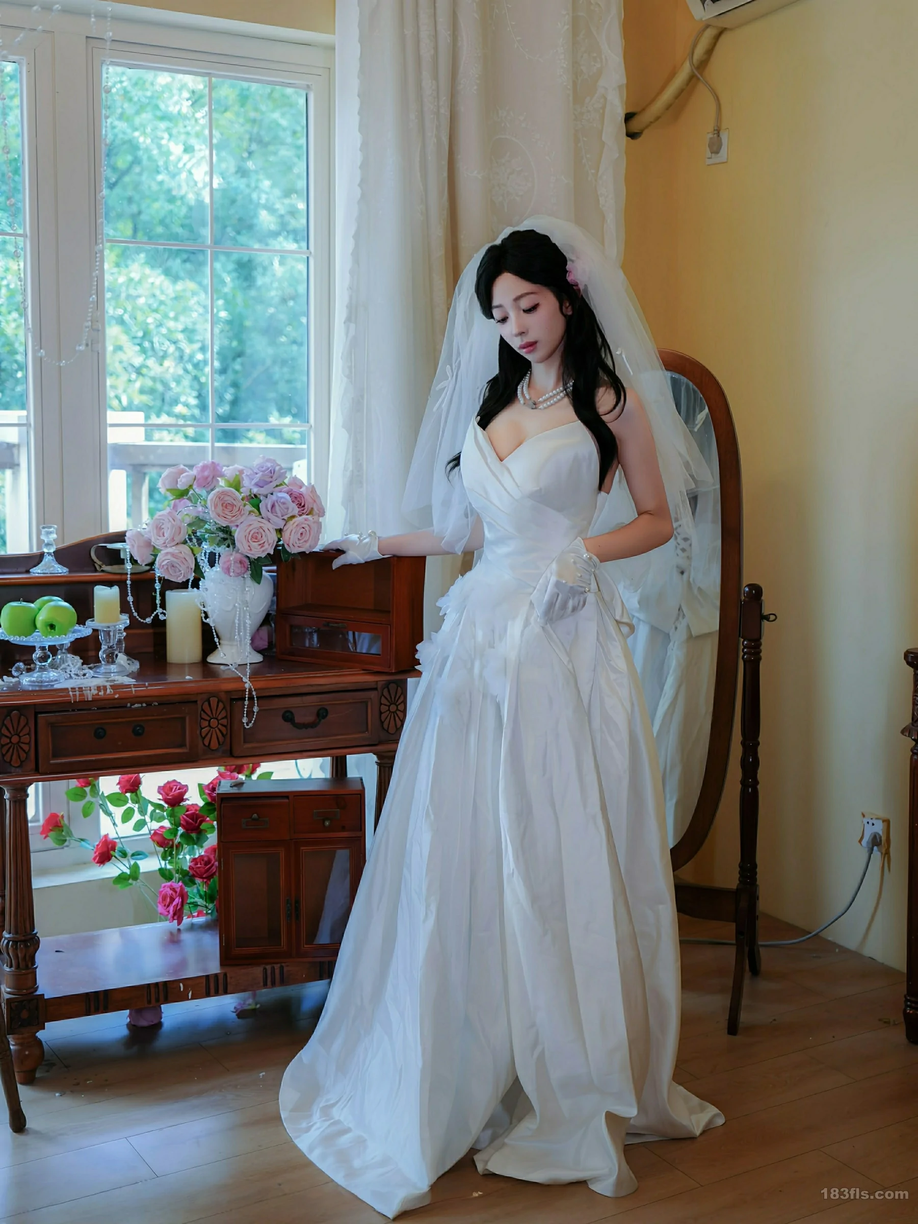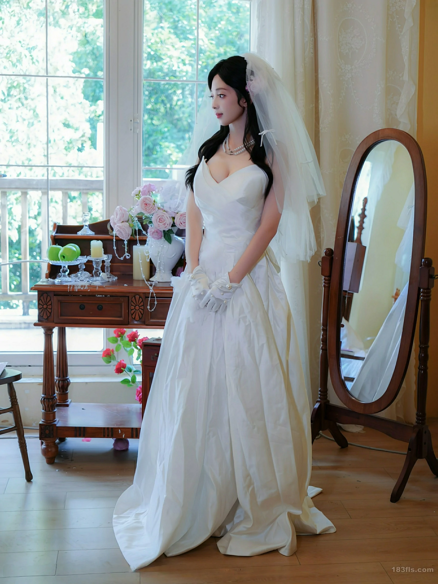 新人朱朱molly首套写真发布,性感白色婚纱搭配性感诱人白色丝袜,凹凸有致的身材柔妙动人,全套写真共54P,希望大家喜欢和多多支持新人。