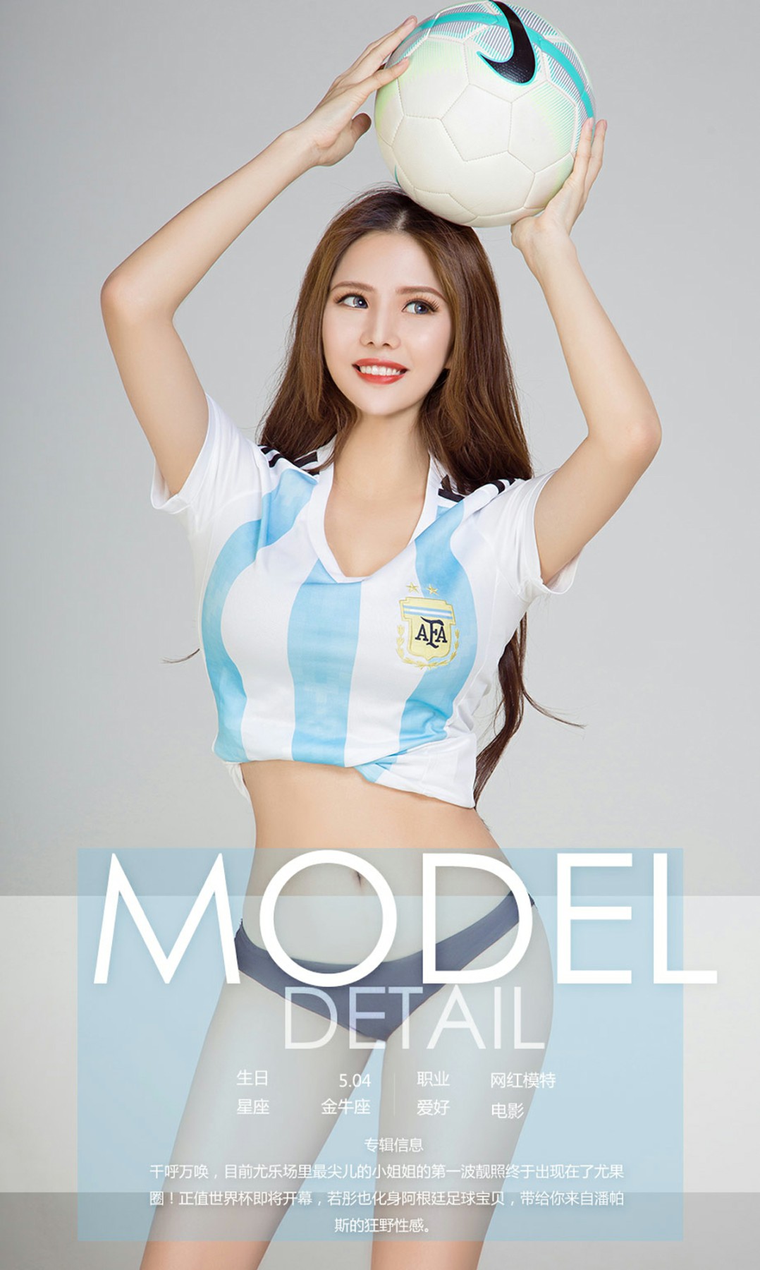 千呼万唤,目前尤乐场里最尖儿的小姐姐的第一波靓照终于出现在了尤果圈!正值世界杯即将开幕,若彤也化身阿根廷足球宝贝,带给你来自潘帕斯的狂野性感。开通会员即可在线观看全部图片!请先您还没有登录请先 登陆 或者 注册